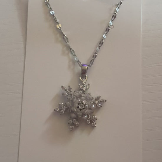 Spinning Snowflake Necklace and Regular Snowflake Earrings